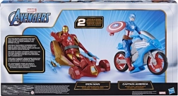 Iron Man in Stotnik Amerika imata svoji značilni vozili – rdeč avtomobil za Iron Mana in moder motor za Stotnika Ameriko.