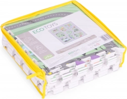 Deli se povezujejo kot puzzle, zato zlahka ustvarite različne oblike, robove in prostorske zgradbe. Podpira učenje skozi igro – sestavljanje, razvrščanje, poimenovanje oblik in orientacijo v prostoru. Protizdrsna tekstura povečuje varnost, gladka površina pa omogoča hitro čiščenje z vlažno krpo. Praktična embalaža z zadrgo olajša prenašanje in shranjevanje.
