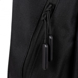 Glavni predal z dvema drsnikoma, oblazinjen žep za prenosnik, sprednji žep, stranski mrežici za steklenico ter odsevni trak za boljšo vidnost.