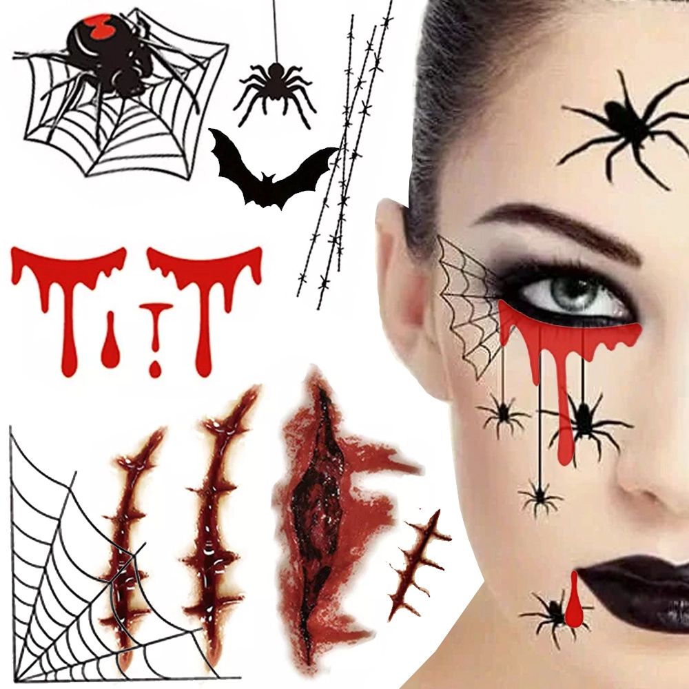 Z raznoliko paleto motivov boste zlahka uskladili make-up za Halloween, tematske zabave in fotografiranja. Vsak list ponuja mešanico strašljivih dizajnov od krvavih pack, pajčevin do globokih brazgotin – za maksimalno realističen učinek.