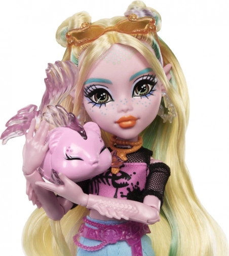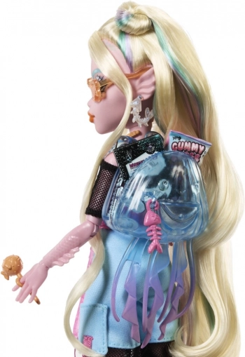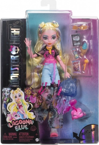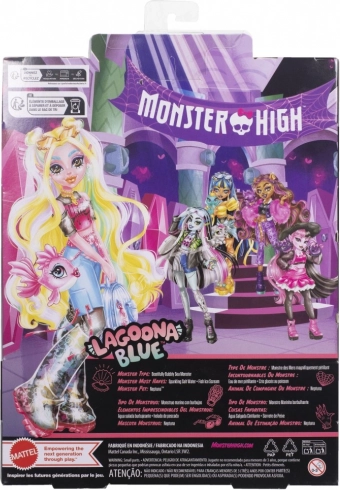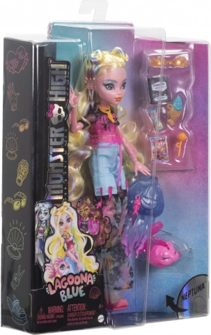 Punčka Lagoona Blue je pripravljena vladati globinam in modnim trendom. Ima dolge, delno spete lase s pastelnimi prameni, rožnat top z motivom ribjih kosti in pisane hlače v slogu Y2K. Zahvaljujoč sklepom je zlahka nastavljiva in primerna za domiselne prizore ter fotografiranje.