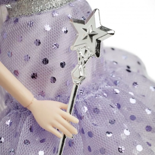 Srebrna zvezdna palčka, nežna tjiara in prosojna krila poudarjajo magično temo in spodbujajo domišljijsko igro.
