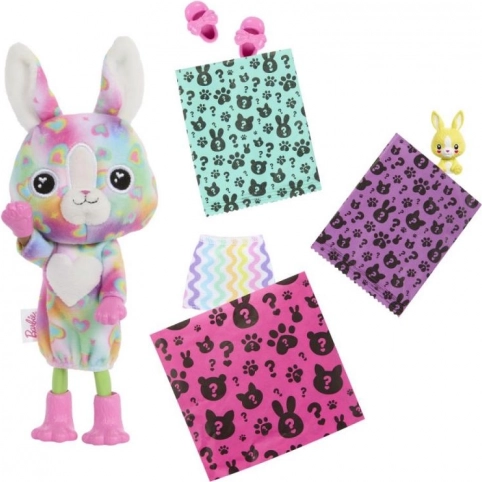 Odkrijte čar odpiranja z lutkami BARBIE Cutie Reveal CHELSEA Pisane sanje in uživajte do 6 presenečenj v enem pakiranju. Razkrijte lutko iz ljubkega plišastega kostuma, najdite ujemajočega se mini ljubljenčka, odkrijte stilno krilce in preizkusite barvno preobrazbo v vodi. Kostum lahko obrnete v oversized plašček, kapuco pa spremenite v ležalnik za ljubljenčka – popolno za ustvarjalno igro in razvoj domišljije.