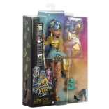 Podajte se na avanturo z Monster High Cleo de Nile, ki postavlja modo mumij na nov standard! Ta čudovita punčka je opremljena z elegantnimi zlatimi in modrimi oblačili ter različnimi stilskimi dodatki, ki poudarjajo njen kraljevski videz.