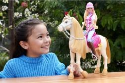 Za vse male ljubitelje konj in Barbie je ta Malibu lutka kot ustvarjena. Oblečena v stilska jahalna oblačila, vključno z roza karo jopičem, modrimi hlačami in rjavimi jahalniškimi čevlji. Barbie je pripravljena na galopske dogodivščine.