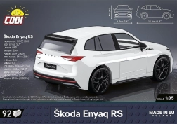 Model v merilu 1:35 je zvesta replika originalnega avtomobila Škoda Enyaq RS, kar bo razveselilo tako otroke kot odrasle oboževalce montažnih setov, zbiratelje in ljubitelje avtomobilov. Ima vrtljiva kolesa s pnevmatikami, ki omogočajo lažje gibanje modela med igro.