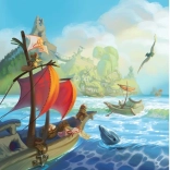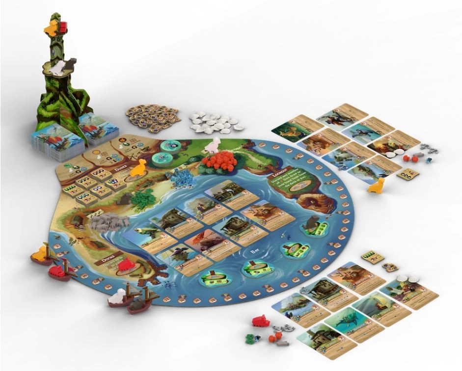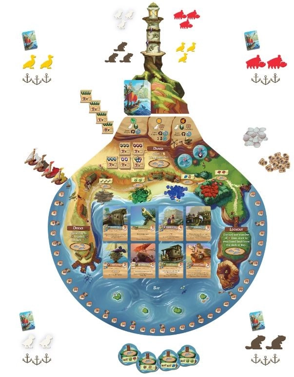 Velika igralna plošča s svetilnikom, otoki in akcijskimi polji povezuje gradnjo mesta s potovanji po morju. Pridobivajte zaklade, raziskujte in točkujte prebrisaneje kot nasprotniki.