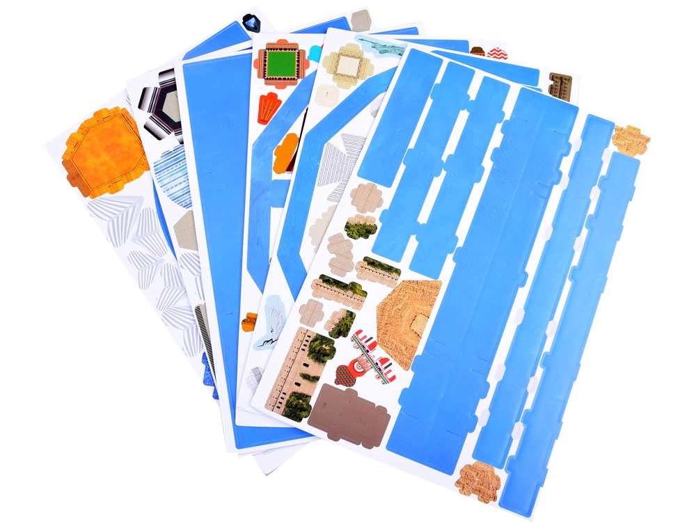 Predtiskani listi s koščki iz trdega kartona zagotavljajo natančen izrez in enostavno sestavljanje v stabilen model.