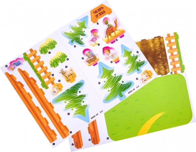 Set vsebuje vse izrezane dele za ustvarjanje barvitega betlehemskega prizora. Idealno kot hitro darilo pod jelko.