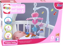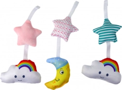 Rožnat vrtiljak z nebeško tematiko bo razveselil vsakega dojenčka. Zahvaljujoč priročni sponki ga preprosto pritrdite na rob posteljice, lok vozička ali na pasove nosilke. Nežne barve in mehke teksture plišastih igrač pritegnejo pozornost in pomagajo umiriti malčka.