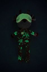 Fluorescenčni potiski na pižami in spalni maski po ugasnitvi luči nežno zasvetijo in otrokom dajejo občutek varnosti pri uspavanju.
