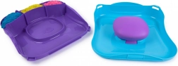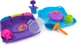Komplet KINETIC SAND Gibljive oblike prinaša edinstven način, da vaše stvaritve »oživijo«. Nasujte in navrstite rožnat, rumen in moder pesek v posodo, poravnajte ga z nazobčano lopatico in nato z orodjem za stiskanje ter žigi ustvarite motive. S pritiskom na penasti podlagi se vzorci začnejo premikati in spreminjati – rezultat je osupljiv in zabava se ne konča.