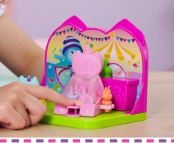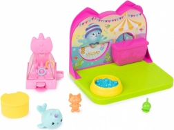 Potopite se v pisani svet GABBY'S DOLLHOUSE s tematsko sobico Narvalkočke. Otroci lahko posadijo figurico v bazen z žogicami, preizkusijo srečo v metanju obročev in zavrtijo upravljalnik, ki zamenja ozadje prizora – zato je vsaka igra drugačna in nabita z domišljijo. Ne manjka niti pult z osvežilnimi prigrizki za še pristnejše karnevalsko vzdušje.
