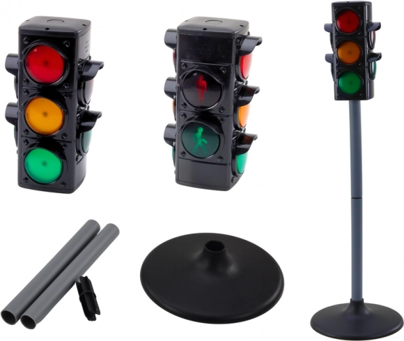 - Svetlobni semafor: posnema pravo signalizacijo (napajanje 3× AAA, niso priložene)