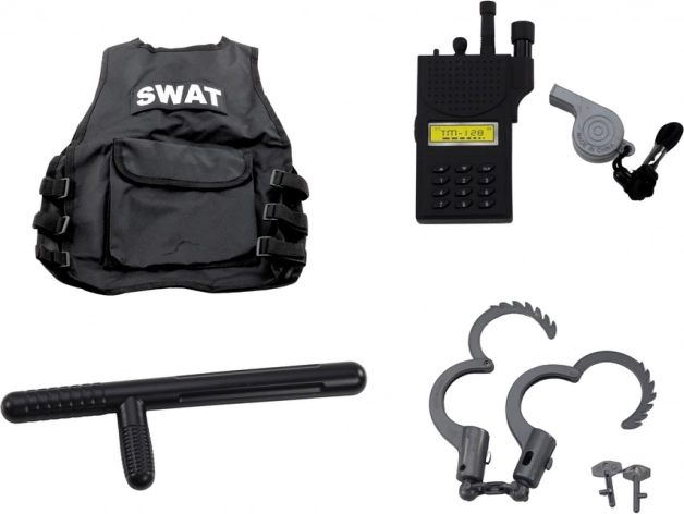 - Realistični dodatki: telovnik, pendrek, lisice, piščalka, voki-toki