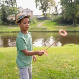 Ujemi Sadje je odlična igra za razvoj koordinacije oko-roka in grobih motoričnih veščin pri otrocih. Igra vsebuje 27 barvnih frizbij{}ev Sadje s premerom 9 cm in 4 palice za lovljenje. Idealna je za zunanje igre v parku ali na vrtu.
