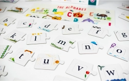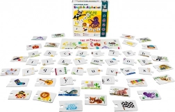 Vsebuje 26 dvodelnih sestavljank z odstranljivimi žetoni in barvast plakat z angleško abecedo. Je odlična alternativa digitalnim igram in podpira otroke v razvoju veščin potrebnih za 21. stoletje.