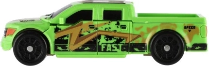 Zabaven transformacijski model, ki se v hipu spremeni iz avtomobila v robota in nazaj. Idealno za otroke od 5 let, ki imajo radi akcijske igrače, futuristične transformacije in kreativno igro. Trpežna plastična izvedba, premične dele in privlačna zelena barva zagotavljajo veliko zabave doma in na poti.