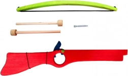 Ta rdeči leseni samostrel je zasnovan za varno in zabavno igro. Zaradi gumijastega napenjanja in mehkih plutovinastih nabojev lahko otroci doživijo realističen občutek streljanja brez tveganja. Robustna konstrukcija iz lesa in kovinskih elementov zagotavlja dolgo življenjsko dobo.