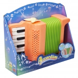Zabavna otroška potegovalna harmonika – akordeon prinaša realistične zvočne učinke in spodbuja razvoj ritma in glasbenega čuta. Kompaktne mere olajšajo držanje tudi mlajšim otrokom, idealno kot prvi glasbeni instrument. Napajanje zagotavljajo 2× AA bateriji (nista priloženi). Primerno za otroke od 3 let.
