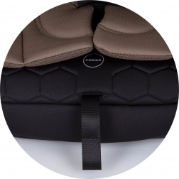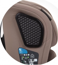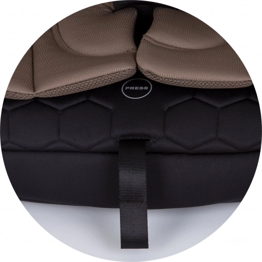 Za varnost skrbi sistem SPS za boljšo zaščito pri bočnem trku in homologacija po ECE R129 i-Size, ki vključuje stroge čelne, zadnje in bočne preizkuse trčenja z naprednimi lutkami Q. Za udobje poskrbijo mehko oblazinjenje, 5-točkovni pasovi z blazinicami in enostavno snemljiva ter pralna prevleka. Zaradi nastavljivega vzglavnika in vložka je sedež primeren za manjše in večje otroke.