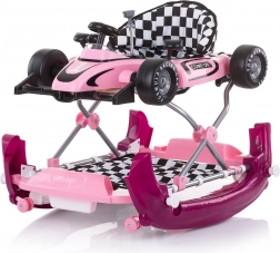 Hodulja 4v1 Car Racer Pink je idealen pomočnik za otroke od 6 mesecev do 12 kg, ki že samostojno sedijo. Združuje funkcije hodulje, gugalnika, igralnega centra in potisne igrače za prve korake. Dirkaški dizajn z odstranljivim pladnjem v obliki formule otroke takoj pritegne in jih motivira k gibanju.