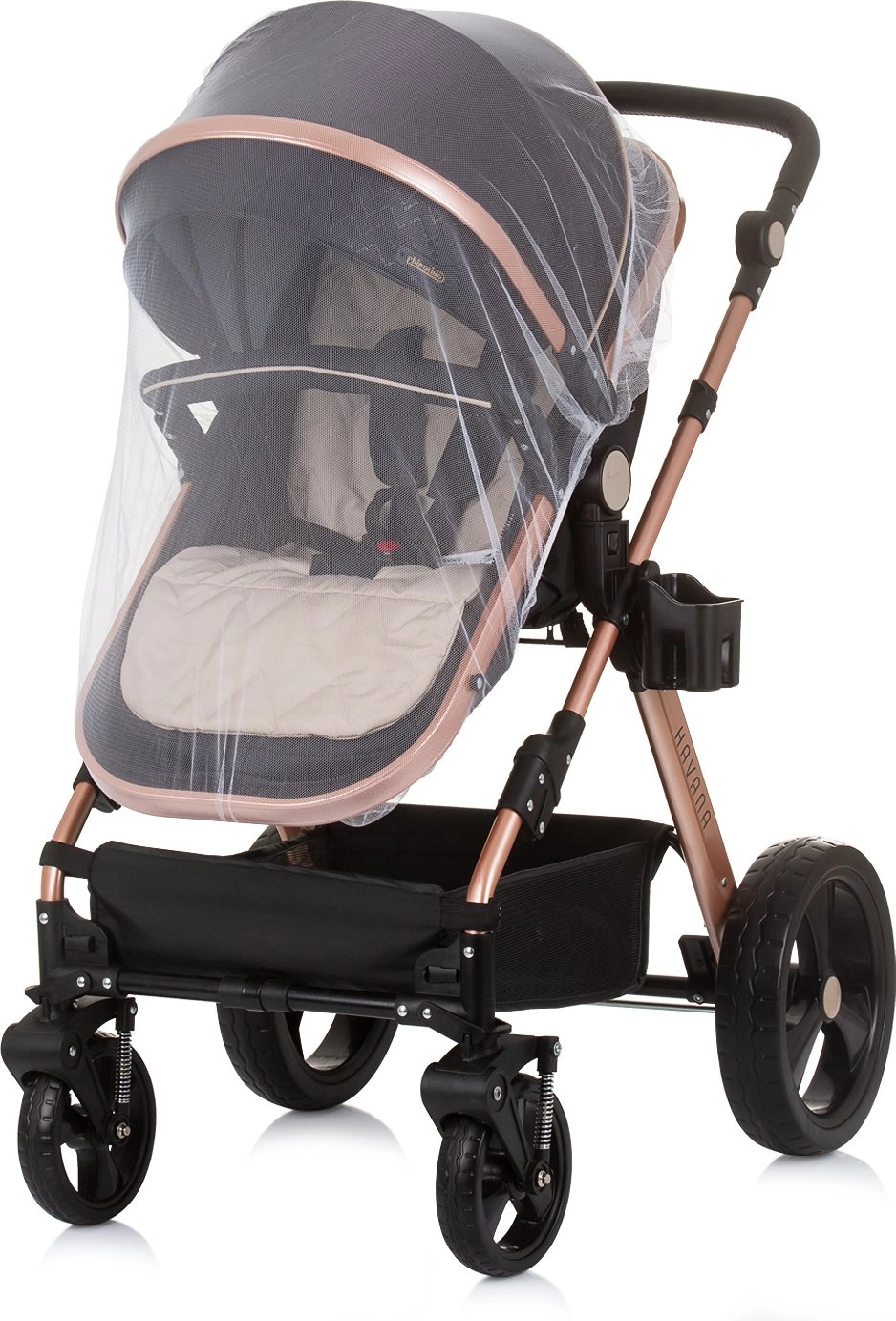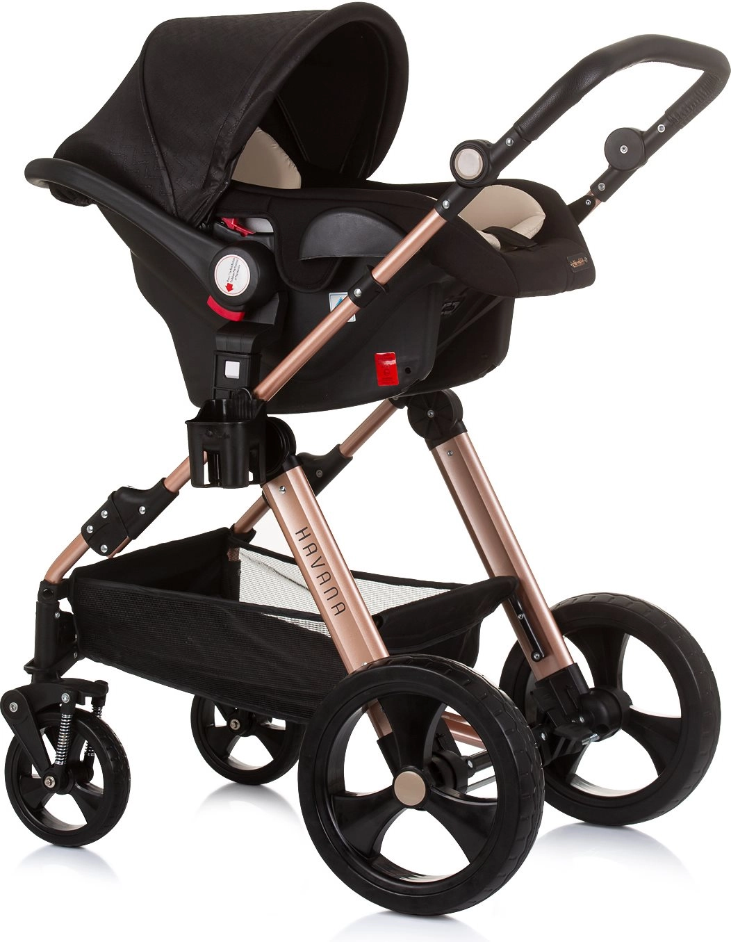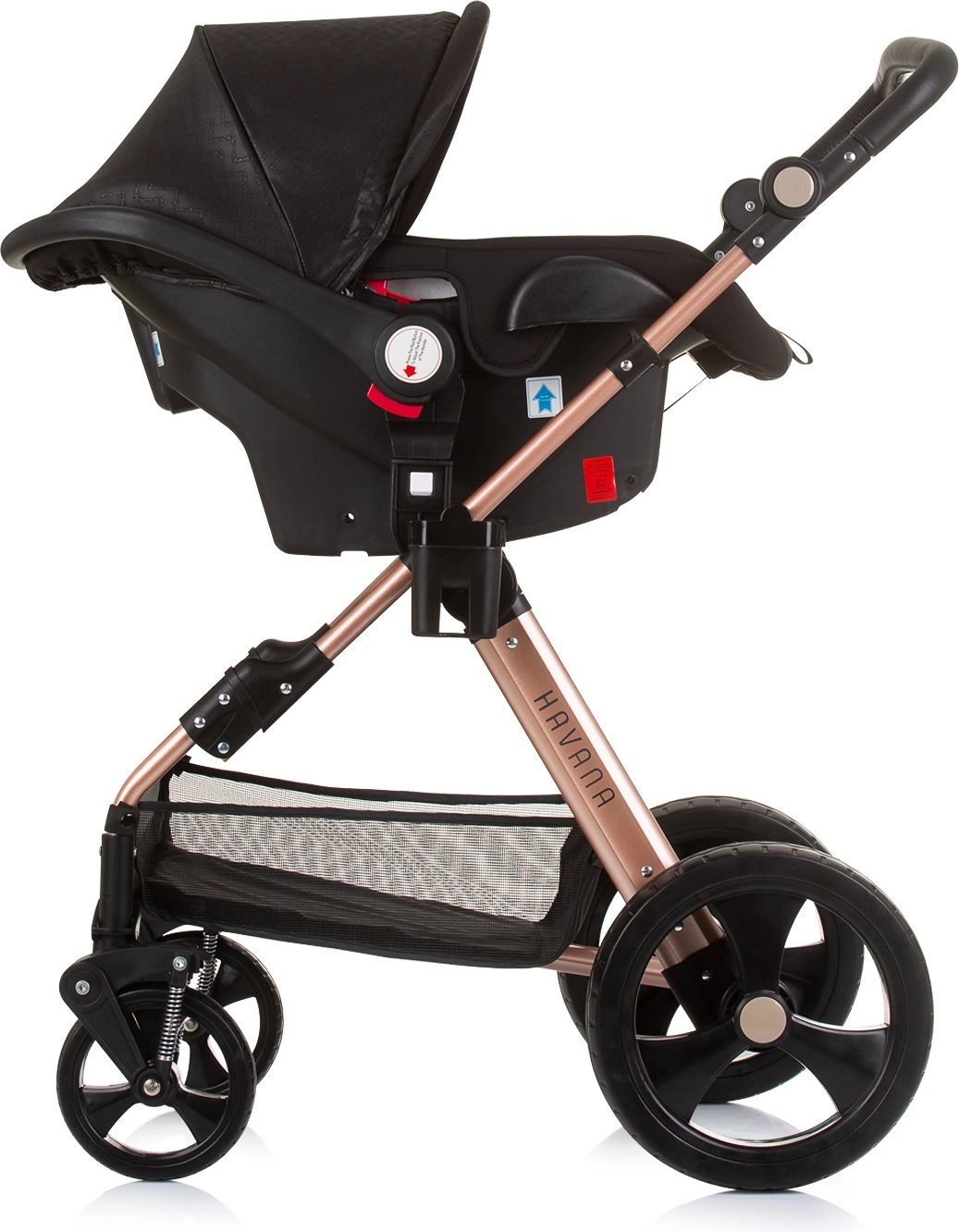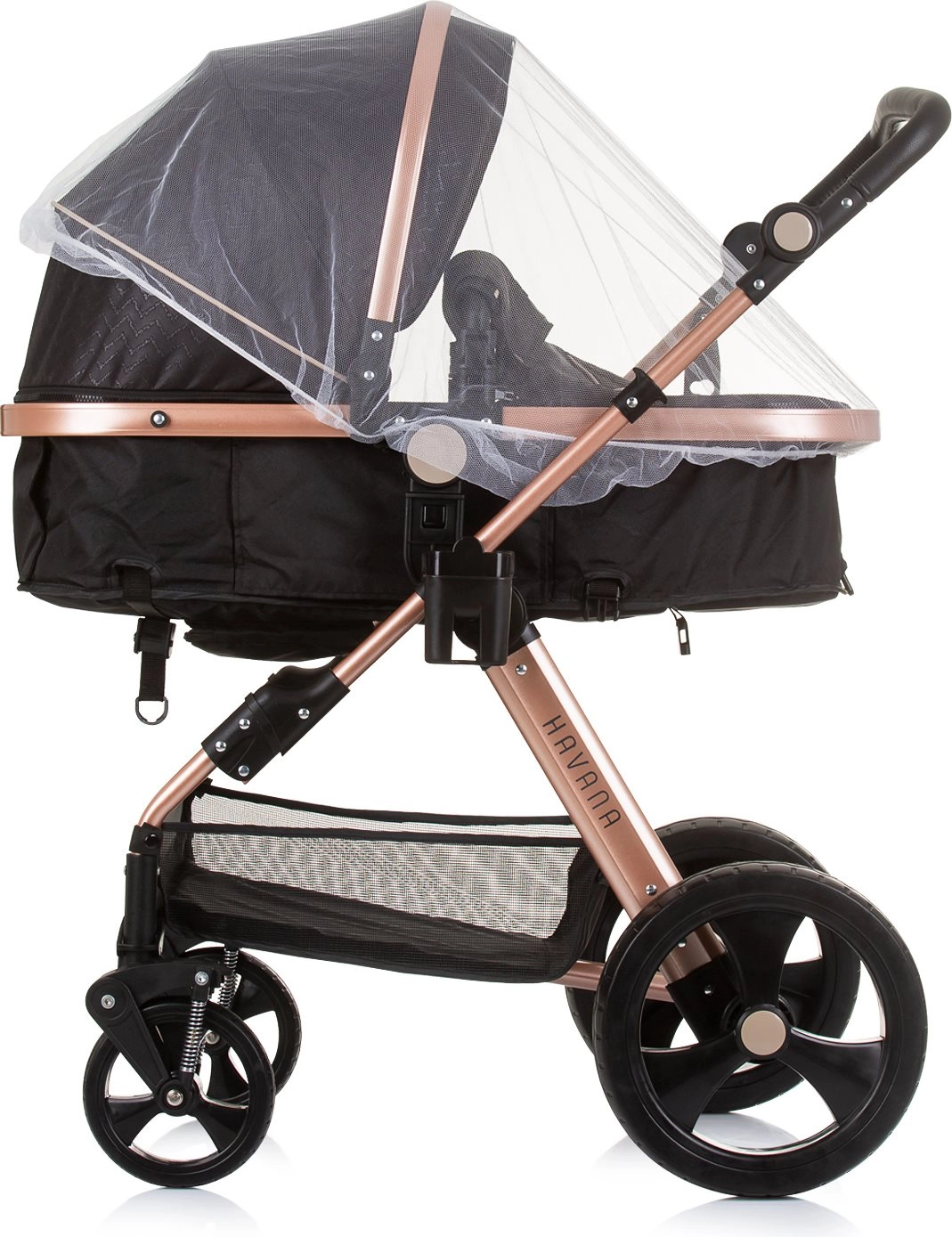 Voziček Havana 2v1 združuje globoko košaro in športni sedež v eni pametni enoti. Sedež zlahka spremenite v udobno košaro za dojenčka do 9 kg, kasneje pa uporabite športni nastavek do 22 kg. Lahko, a trpežno ogrodje iz zlitine ter učinkovito vzmetenje koles zagotavljata gladko in stabilno vožnjo v mestu in parku.