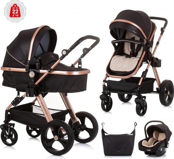 Sodoben kombinirani voziček CHIPOLINO HAVANA 2v1 ponuja elegantno rešitev za novorojenčke in večje otroke do 22 kg. Zahvaljujoč lahkemu ogrodju, enostavni pretvorbi sedežne enote v košaro ter bogati opremi je idealna izbira za vsakodnevno uporabo. Ne manjkajo hitro snemljiva vzmetena kolesa, vožnja v smeri ali proti smeri, višinsko nastavljiv ročaj z oblogo iz eko usnja in prostorna košara za vse potrebščine.