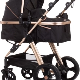 Lahko ogrodje iz zlitine je enostavno vodljivo, vzmetena in hitro snemljiva kolesa premagujejo mesto in slabši teren, zadnja kolesa imajo zanesljivo členkasto zavoro. Velika nastavljiva strešica z odstranljivim senčnikom, 5-točkovni pasovi z mehkim oblazinjenjem in nova stabilizacijska varovalka sedeža in košare (kolekcija 2024) povečujejo varnost in udobje.