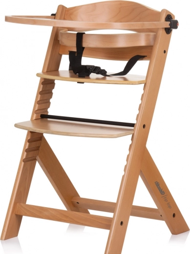 Leseni stolček za hranjenje Chipolino Tip Top 2v1: visoka in nizka različica, nastavljiv sedež in opora za noge, odstranljiv pladenj, 3-točkovni pas, standard EN 14988.