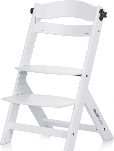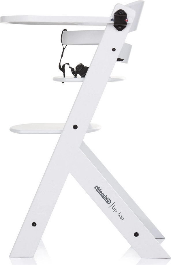 Varno in udobno uporabo dopolnjuje anatomsko oblikovano naslonjalo, odstranljiv pladenj za preprosto vzdrževanje ter zanesljiv 3-točkovni varnostni pas. Kakovostna lesena konstrukcija z modernim belim videzom se odlično poda v vsak interier in nudi stabilnost pri vsakodnevni uporabi.
