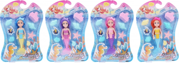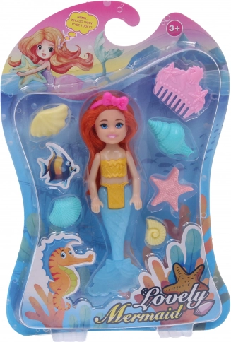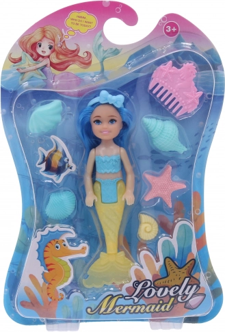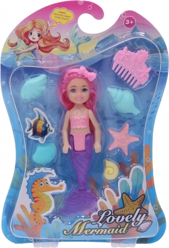 Prisrčna punčka morska vila 15 cm bo razveselila vsakega otroka. V pakiranju najdete vilo z glavnikom in školjko, na voljo v 4 barvnih različicah – vijolična, rožnata, oranžna in modra. Idealno za kreativno igro in razvoj domišljije.