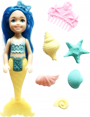 Odkrijte čarobni podvodni svet s prisrčno morsko vilo velikosti 15 cm. Ta majhna punčka je odlična za otroško ročico, z dodatki pa si lahko otroci ustvarjajo lastne zgodbe in skrbijo za frizuro. Barvne različice omogočajo, da izberete točno tisto, ki je najbolj všeč.