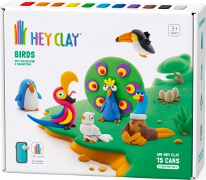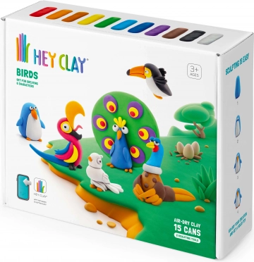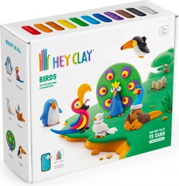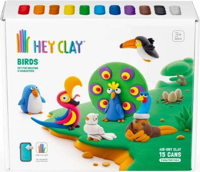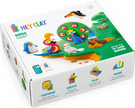 Iz modelirne mase HEY CLAY si lahko otroci ustvarijo nešteto različnih figuric, živalic ali priljubljenih junakov. Po oblikovanju je pomembno, da figure na zraku dovolj otrdijo, nato pa se lahko vključijo v nadaljnje igre in zabavo. Tako si preprosto ustvarite lastne figurice in like ali pa Hey Clay znova pospravite v lonček za nadaljnje ustvarjanje. Z mobilno aplikacijo Hey Clay (iOS, Android), ki jo lahko brezplačno prenesete in ki otrokom ponuja dodatne možnosti za razvijanje domišljije, barv in čarobnega ustvarjanja novih likov – koda v vrednosti 5 USD za odklep aplikacije je priložena v vsakem pakiranju. Komplet Hey Clay vsebuje 2 plastični kiparski orodji, 15 lončkov z mehko, nežno in dišečo modelino ter dostopno kodo do aplikacije za kupljeno serijo. Barve v pakiranju vam omogočajo izdelavo 6 figuric.