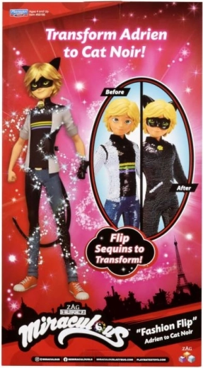 Odkrij čar preobrazbe s trendovsko punčko MIRACULOUS Fashion Flip. Z enim gibom preklopiš iz civilnega videza Adriena na ikoničnega superjunaka Črnega mačka. Zahvaljujoč flip mehanizmu in obrnljivim bleščicam je vsaka igra polna presenečenj.