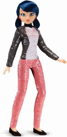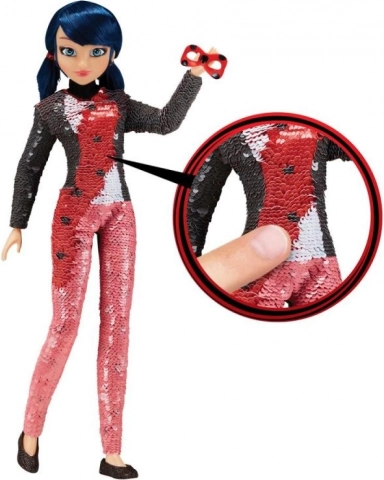 Priljubljena junakinja iz Miraculous prihaja kot zgibna punčka, ki preseneča ob vsakem dotiku. Zahvaljujoč posebnim dvostranskim bleščicam zlahka preklopiš civilni videz Marinette v ikonični kostum Pikapolonice. Dovolj je, da z roko potegneš po bleščicah in opazuješ, kako se spreminjata barva in vzorec.