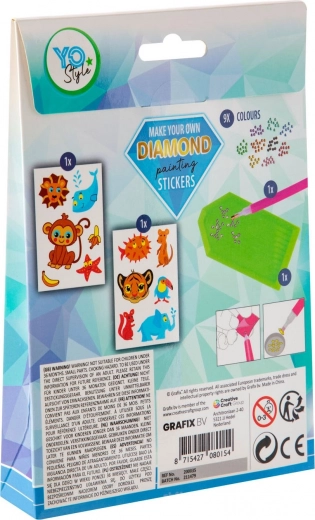Ustvarite svoje bleščeče dekoracije s setom za diamantno slikanje z živalicami. Vsebuje vse za enostavno ustvarjanje: 12 nalepk, 9 barv kamenčkov, aplikator, vosek in posodico. Relaksacija, kreativna zabava in takojšen učinek brez umetniških veščin.