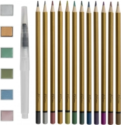 Ta vsestranski komplet GRAFIX prinaša vse, kar potrebujete za domiselne likovne projekte. Kovinski toni vašim ilustracijam, letteringom in dnevnikom dodajo privlačen lesk in globino. Praktičen kovinski kovček ščiti vsebino in olajša prenašanje – odlično za šolo, atelje in potovanja.