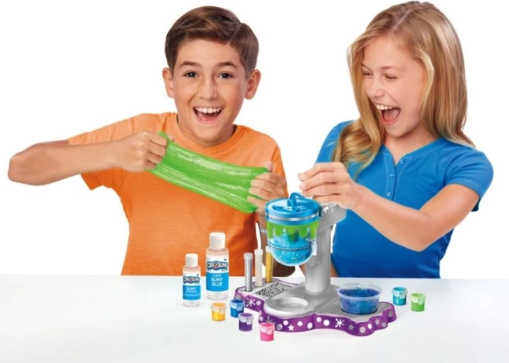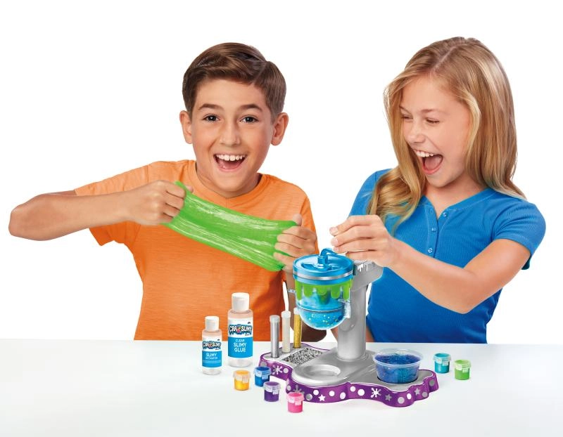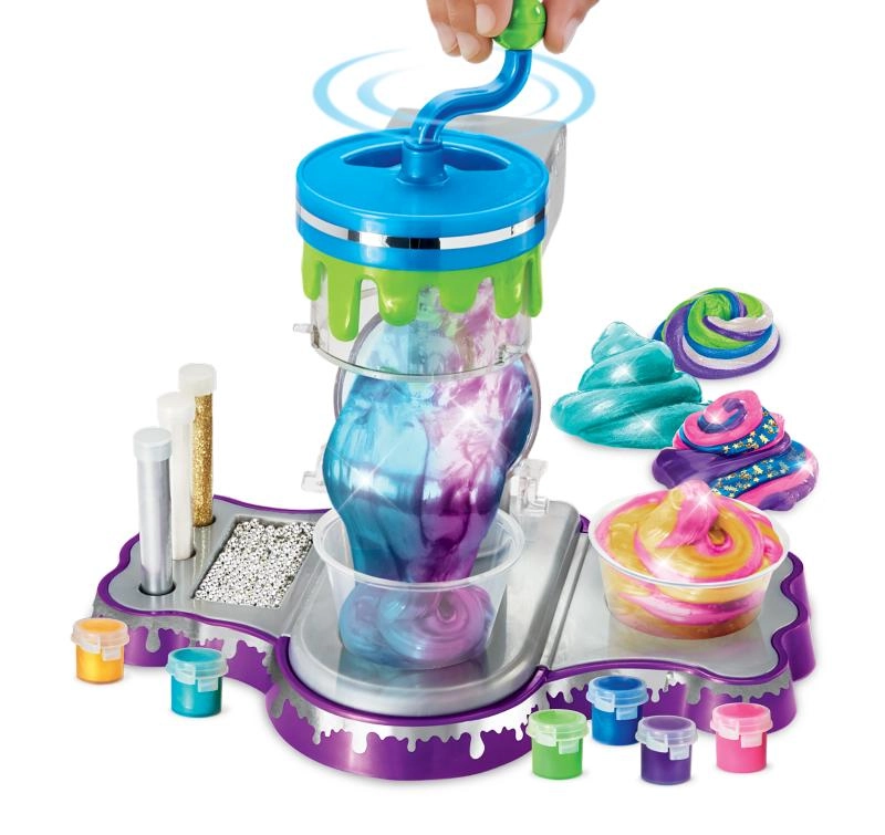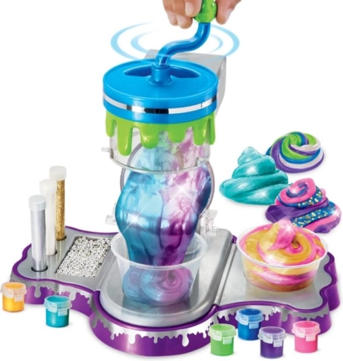 Ta ustvarjalni komplet za izdelavo sluzi spremeni mizo v majhen laboratorij. Prozorna mešalna komora in ročna ročica omogočata otrokom varno spremljati proces mešanja in imeti popoln nadzor nad konsistenco. Zahvaljujoč kovinskim pigmentom in bleščicam boste ustvarili efektne sluzi z mavričnimi odsevi.
