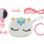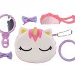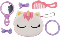 Set vključuje glavnik, ogledalo, zapestnico in pisane sponke za oblikovanje. Idealno za vsakodnevno ustvarjalno igro.