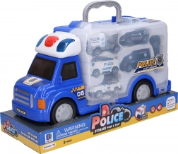 Ta velik policijski avto meri 34 cm v dolžino, 12,5 cm v širino in 18,5 cm v višino. Opremljen je s prostimi kolesi, ki omogočajo lahkotno gibanje po podlagi. S pritiskom na rdeč gumb na kabini lahko aktivirate svetlobne in zvočne učinke, ki prispevajo k realistični igralni izkušnji.