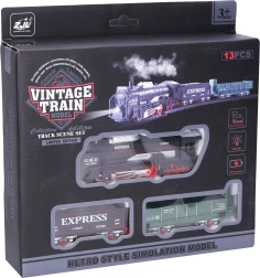 Doživite pustolovščino na tirih s tem vlakovnim kompletom z učinki. Z dimenzijami železnice 68x68 cm nudi dovolj prostora za vožnjo in igro. Lokomotiva dolžine 13 cm in vagoni dolžine 9–11 cm so zasnovani za maksimalno zabavo. V kompletu najdete lokomotivo in dva vagona, kar je idealna kombinacija za daljša potovanja.
