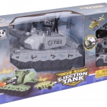 Komplet je bogato opremljen, zato lahko otroci začnejo takoj: tank 21 cm, 3 vojaški avtomobilčki 7 cm s prostim tekom koles, helikopter 8 cm in 8 puščic. Mehanski pogon na vztrajnik zagotavlja zabavo brez baterij, slikovni priročnik na embalaži pa olajša prve misije.