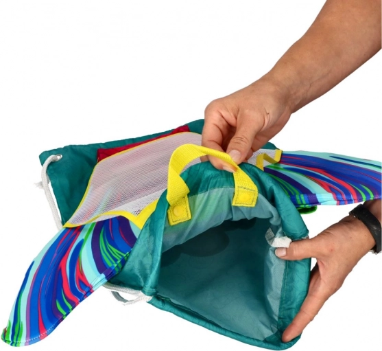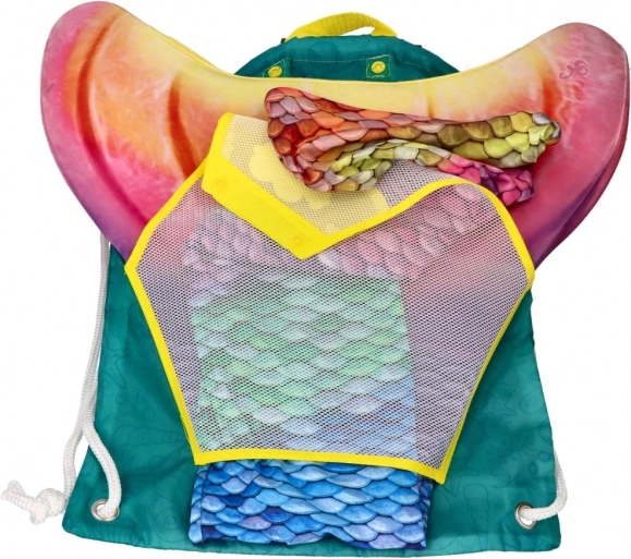 Lahka zračna vreča KUAKI MERMAIDS za morski rep in plavanje. Zategovanje z vrvico, hitrosušeča mrežica, dimenzije 32 × 47 cm. Idealna za bazen.