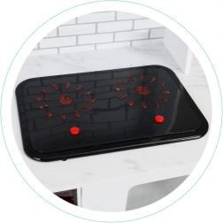 LED osvetlitev posnema razžarjene gorilnike, spremljevalno brbotanje pa ustvarja vtis pravega kuhanja – idealno za realistično igro.