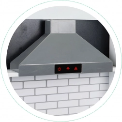 Zgornji del kuhinjice krasi napa in praktične kljukice, zahvaljujoč katerim bodo dodatki vedno pri roki, kuhinja pa bo ostala pregledna.