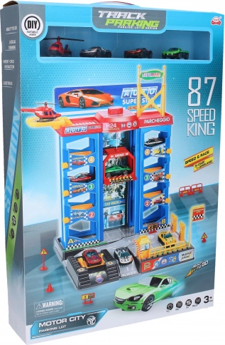 Ta podrobno izdelana parkirna postaja otrokom prinaša realistično igro mestnega prometa. Zahvaljujoč robustnim kovinskim vozilom in helikopterju bodo uživali v številnih akcijah, od pristanka na heliportu do točenja goriva na bencinski črpalki. Mehanska ročica pri parkirnih mestih omogoča gladek izvoz avtomobilov iz garaže.