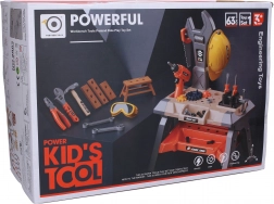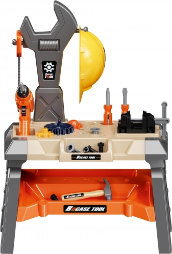 Ta otroška delovna miza z orodjem bo vsako sobo spremenila v majhno delavnico. Zaradi bogate opreme in realističnih podrobnosti bodo otroci uživali v dolgih urah varne in ustvarjalne igre. Električni vrtalnik s svetlobnimi učinki ter stikalom ON/OFF in spremembo smeri vrtenja prinaša pristno izkušnjo »pravega« orodja.