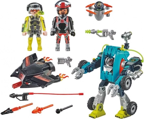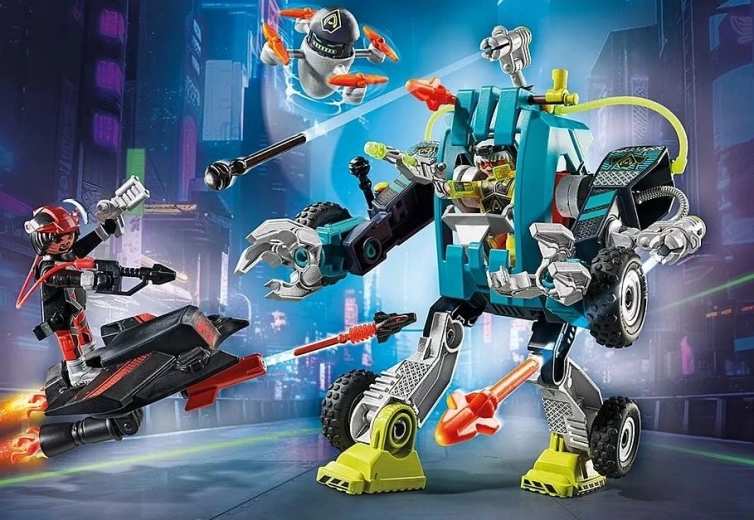 PLAYMOBIL Robot proti jadralniku: akcijska sestavljanka 96 delov z robotom, jadralnikom, dronom in figuricami. Izstreljevanje, gibljivi deli in ure kreativne zabave.