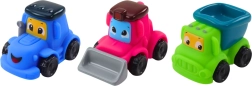 Komplet 3 kmetijskih avtomobilčkov je odlična igrača za otroke, ki jim nudi ure varne in ustvarjalne igre. Vozila so izdelana iz mehkega gume in trpežne plastike ter ne vsebujejo ostrih robov ali majhnih delov, zato jih lahko brez skrbi ponudite tudi najmlajšim. Set vključuje tri ljubka vozila: traktor, buldožer in prekucnik, vsako s prijaznim nasmejanim obrazom, ki takoj vzbudi naklonjenost in vabi k igri.